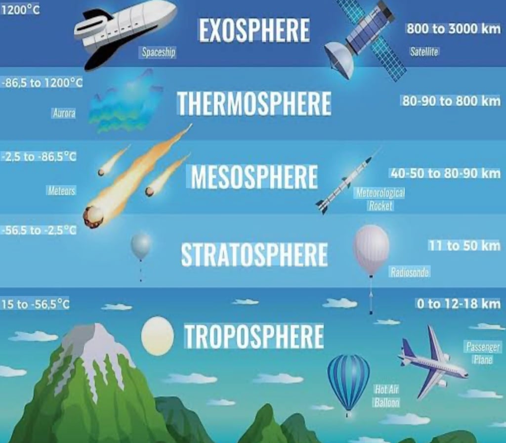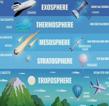 1) The Atmosphere, which consists of troposphere, stratosphere, mesosphere, thermosphere, and exosphere, contains our weather, houses the ozone layer, and traps the greenhouse gases, which block heat from escaping and create positive feedback loops, causing environmental disasters.